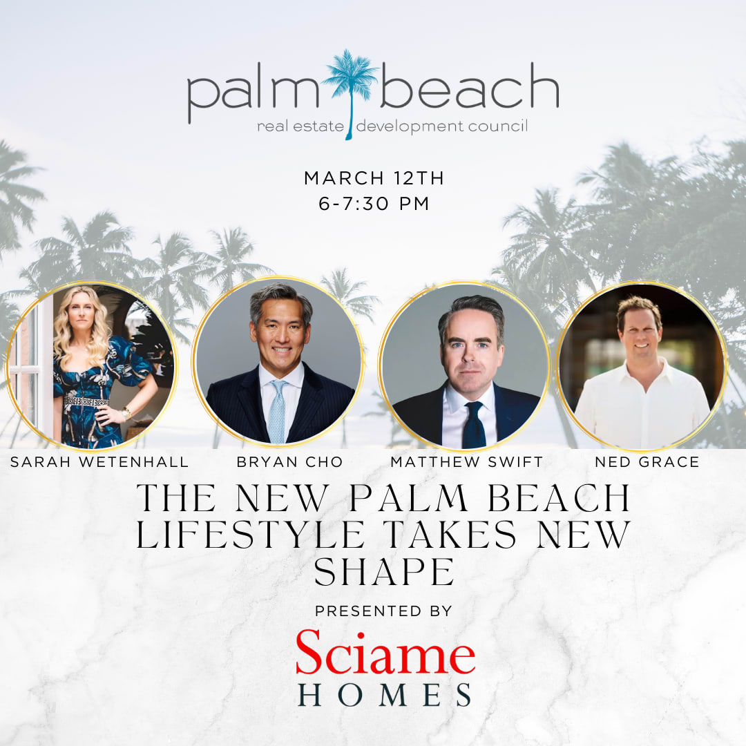 Join the Palm Beach Chamber of Commerce Real Estate Development Council on March 12 from 6:00–7:30 PM for “The New Palm Beach Lifestyle Takes New Shape,” presented by Sciame Homes.