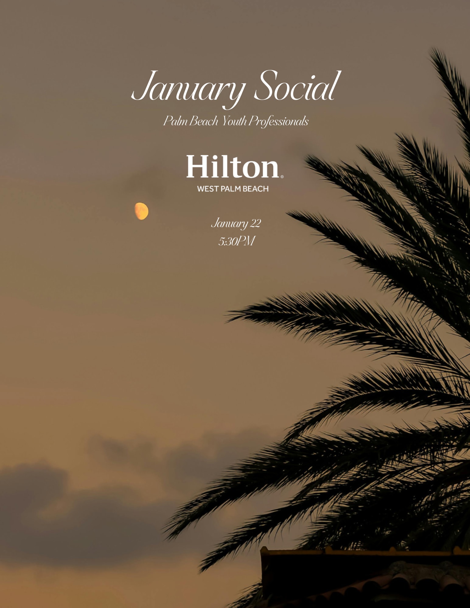 Join Palm Beach Young Professionals for an evening of elevated community! Whether you are new to Palm Beach or a long-time local, this gathering offers an opportunity to engage with peers from diverse industries and cultivate meaningful relationships. Disclaimer: Please note that all Chamber events are photographed and/or recorded. By attending, you consent to your image being used in Chamber publications, on our website, and across our digital and print platforms for promotional purposes. MUST BE REGISTERED TO ATTEND PBYP Members - Free Non-PBYP Members - $100 This event is strictly for individuals aged 21-40 years old. You will not be admitted if you are not of age. *All ticket purchases are non-refundable & non-interchangeable. You may not give your ticket to someone else. 2026 January PBYP Social